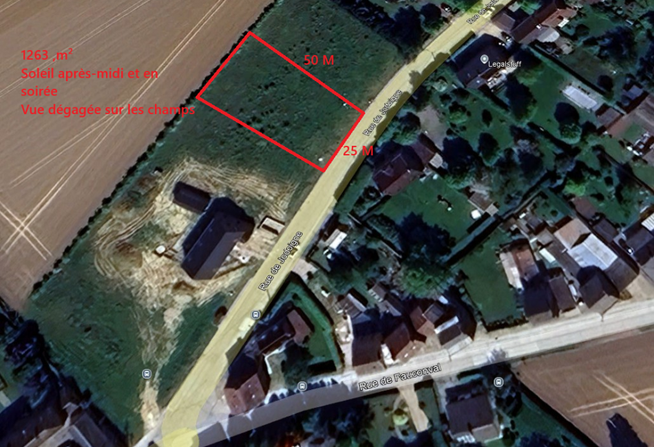 D’une superficie de 1.263 m², le terrain bénéficie d’une large façade d’environ 25 mètres, idéale pour la construction d’une villa 4 façades spacieuse avec jardin. Son orientation permet de profiter d’un jardin et d’une terrasse ensoleillés l’après-midi et en soirée.