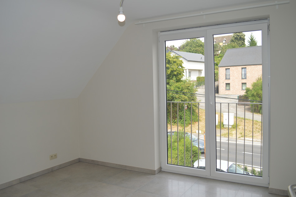 Situé au 2ème et dernier étage d’un immeuble récent sans ascenseur, ce magnifique appartement lumineux se compose d’un séjour avec une cuisine US super équipée, d'une terrasse agréablement bien orientée avec une vue verdoyante sur les environs, de deux chambres de beaux volumes (13-12 m²), d’une salle de douche et d’un w.c. indépendant. Vous disposerez également d’un emplacement extérieur de parking privatif. Compteurs privatifs eau-gaz-électricité, chaudière individuelle au gaz, châssis double vitrage, vidéophone, pré câblage TV / Internet. Loyer mensuel de 800 euros. Provision mensuelle pour charges communes 25 euros. Pas de syndic d'immeubles. Libre le 1er août 2022. Label énergétique B (125 kWh/m².an 10217kWh/an).